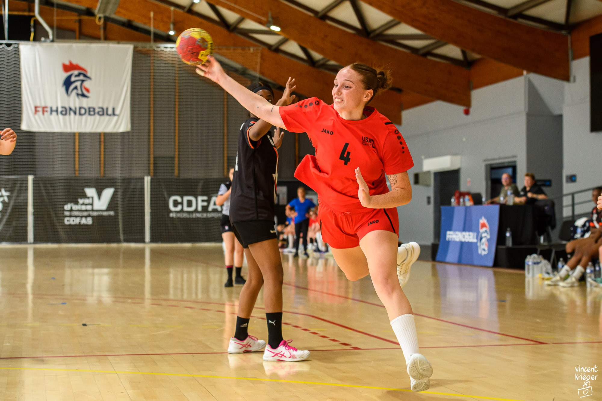 Handball Revivez l’intensité de la rencontre féminine de handball entre la Sélection du Val d’Oise et la Sélection nationale des États-Unis. Un affrontement passionnant où la technique et l’adrénaline se rencontrent sur le terrain, capturé par un photographe sportif au plus près de l’action.